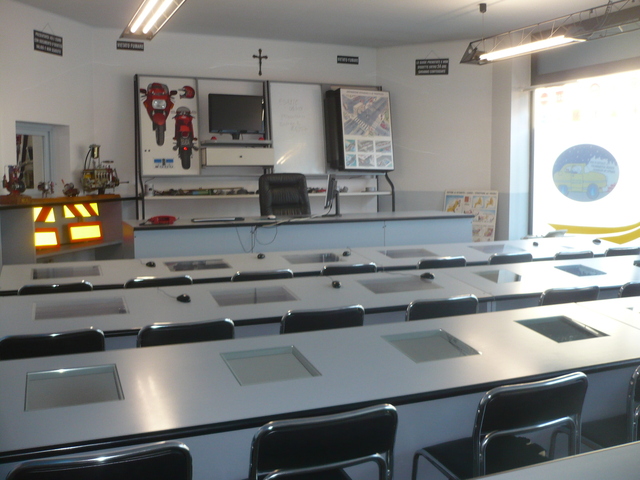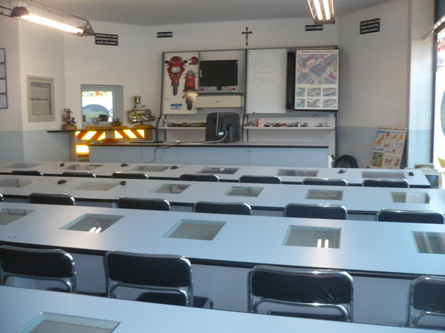 L' aula, molto accogliente e spaziosa, è attrezzata per esercitazioni con computers su cui è installato un programma ministeriale, chiaro e semplice, il quale consente una preparazione ottimale anche per i cittadini stranieri.